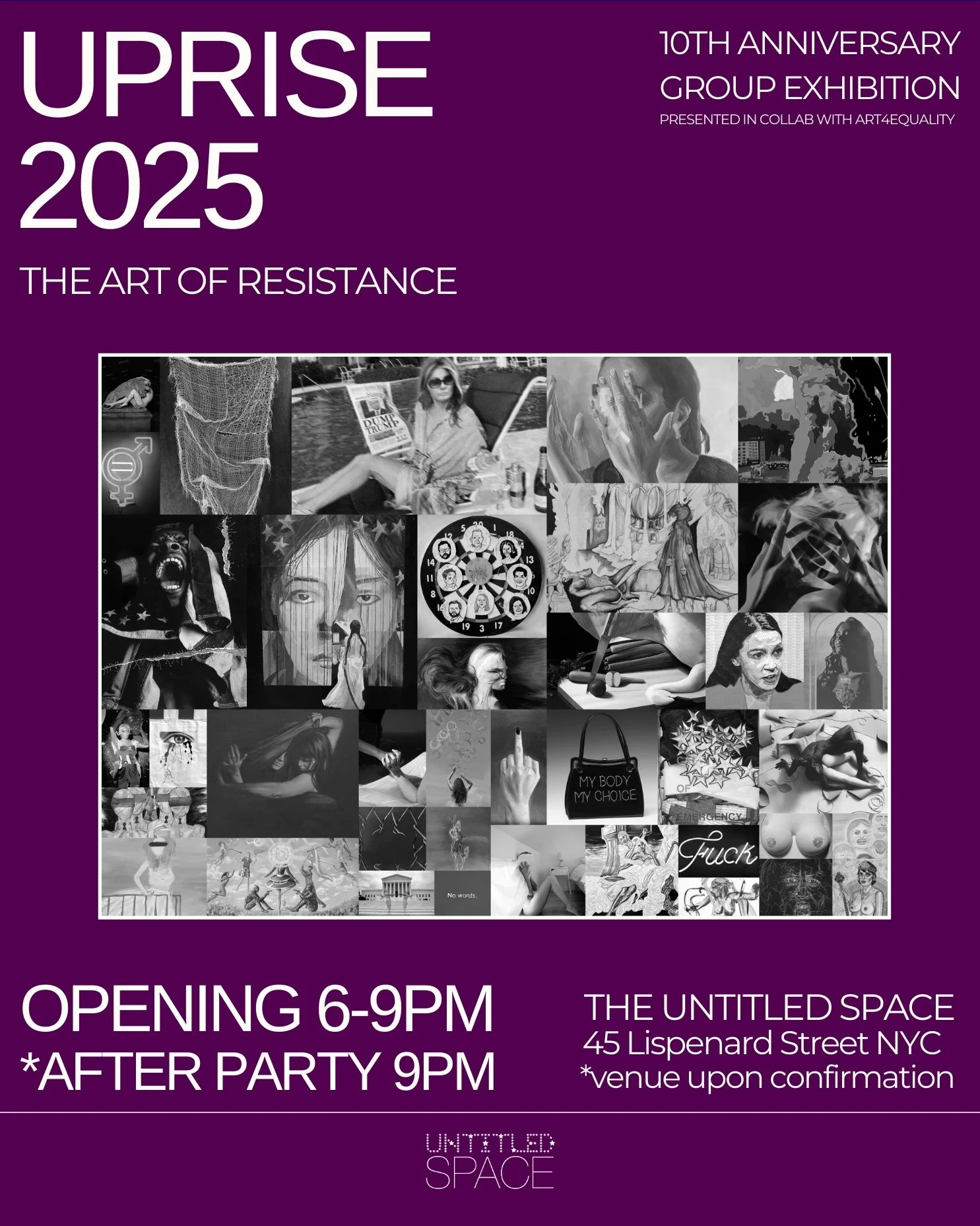 This exhibition brings together artists of all genders from The Untitled Space’s extensive history of exhibitions, along with several new exhibitors, many of whom have used their art to address issues such as gender equality, immigration rights, reproductive justice, and social justice. With a particular focus on the ongoing struggle for women’s rights, LGBTQ+ rights, immigration rights, and the fight for equality across all races and genders with the attacks against DEI (Diversity, Equity, and Inclusion) programs, the UPRISE 2025 exhibition is a declaration of resilience in the face of adversity. This powerful exhibition will explore how art serves as a vital tool for resistance and activism in the face of the current political climate.